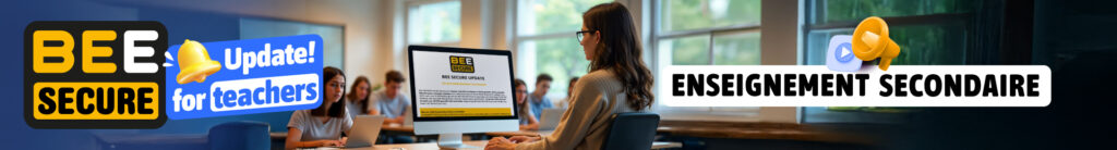Le BEE SECURE UPDATE résume les sujets actuels qui sont importants dans le monde numérique – dans le but de sensibiliser à une utilisation plus responsable et plus sûre d’Internet. Inscrivez-vous ici pour recevoir les prochaines éditions destinées aux écoles fondamentales.