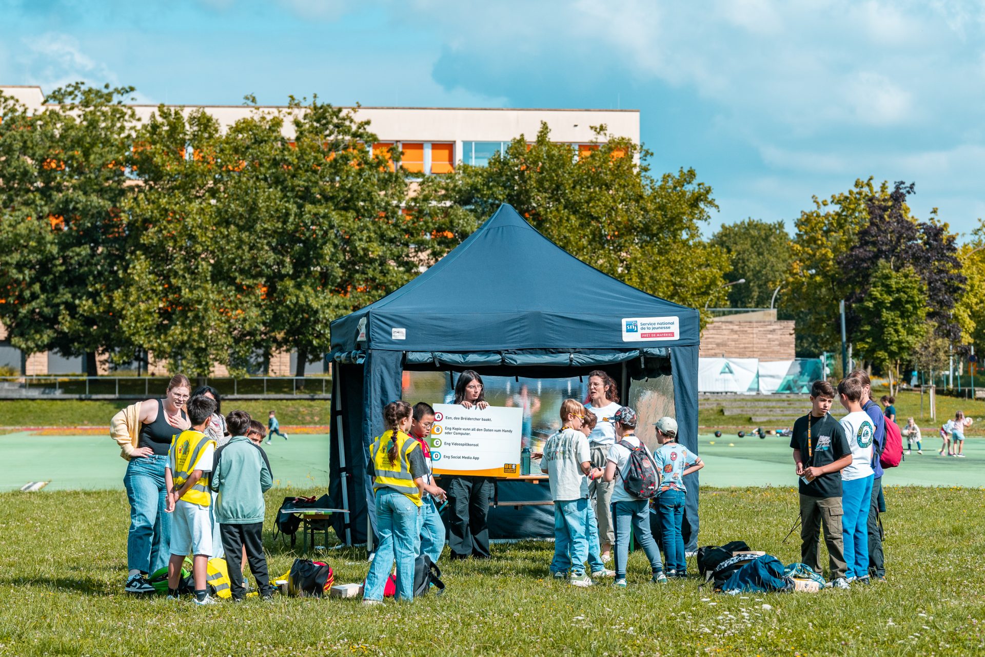 La DigiRallye a été organisée par BEE SECURE. Un grand merci aux partenaires Base 1, KJT, la Media Factory, l’équipe de Sport erliewen et la Police Lëtzebuerg. L’objectif était d’offrir aux enfants de 8 à 12 ans un accès adapté à leur âge aux thèmes centraux de l’éducation au numérique.